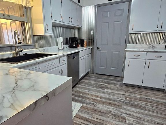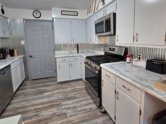 Don't miss out on this opportunity to buy this charming ranch home. The back yard is fenced. Updates include new central air in 2022. Range, refrigerator, dishwasher all are included, (New in 2021) New tilt-in windows except the D.R. & garage windows. New flooring throughout. No carpet. New metal roof over lg utility rm. Enjoy the patio area & see the wildlife while you relax. Garage door with 2 remotes & keypad. Large shed (the 2nd one) is $5,000 and if you don't want it, seller will take it out and reseed. Get inside.