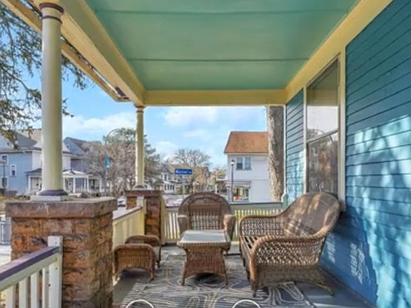 Central islandCentral air conditioningTree-lined streetFurnished front porchGleaming hardwood floorsSun-drenched living spacesCherry cabinets
