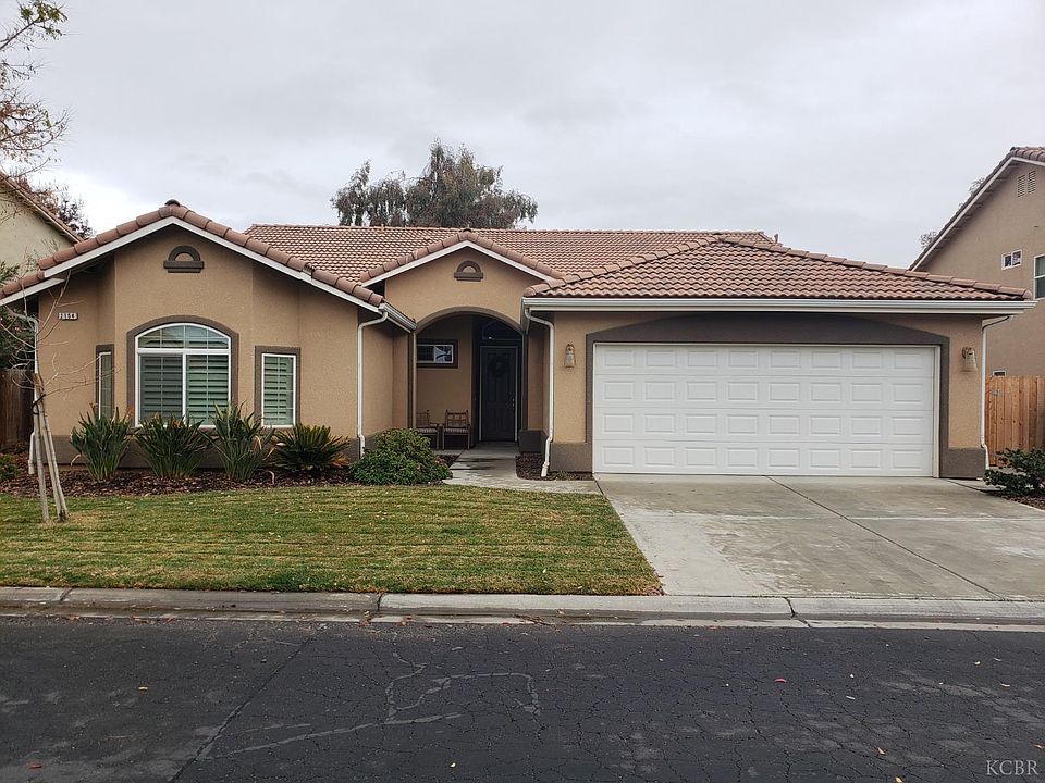 This beautiful and spacious 4 bedroom 2 bathroom home on the Lemoore Golf Course is ready to move right into! Walk into an open concept Family Room that opens to the kitchen and offers a view of the 12th hole. This former model home boasts a dream kitchen with custom cabinets, a large island, granite counters, and stainless appliances, including the refrigerator. The primary suite includes dual closets and an en suite bathroom with soaking tub, shower, and dual vanities! The backyard has a nice covered patio, pre-wired electrical for a hot tub, privacy area, and room for a garden. A tandem 3 car garage with built in storage completes this beauty. Come see for yourself.