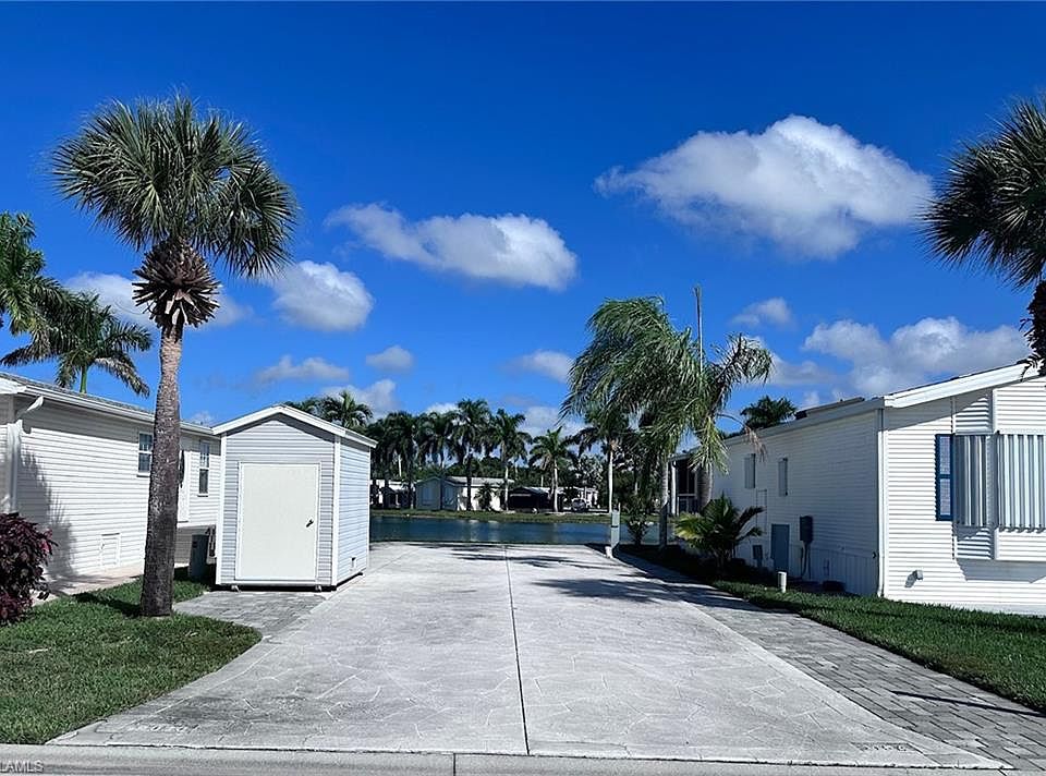 Back-in 35x70 RV site featuring stamped and painted concrete with pavers surrounding the area, creating an expanded patio space. The site includes a 6x10 storage shed and offers a beautiful view of the lake. Silver Lakes is a vibrant, gated community perfectly situated between Naples and Marco Island, offering the ideal blend of relaxation, recreation, and convenience. Residents enjoy deeded, fee-simple ownership and a host of resort-style amenities designed to support an active and social lifestyle. This beautifully maintained community features a 9-hole golf course, two spacious clubhouses, three swimming pools, and two hot tubs. Stay active with access to pickleball courts, a fitness center, tennis courts, bocce ball, shuffleboard, horseshoe pits, billiards, and ping pong. The resort also offers a full calendar of planned activities and social events, creating a true sense of community. Just a short drive from downtown Naples, Marco Island, and the stunning white-sand beaches of the Gulf, Silver Lakes is the perfect home base for exploring the natural beauty and cultural attractions of Southwest Florida.