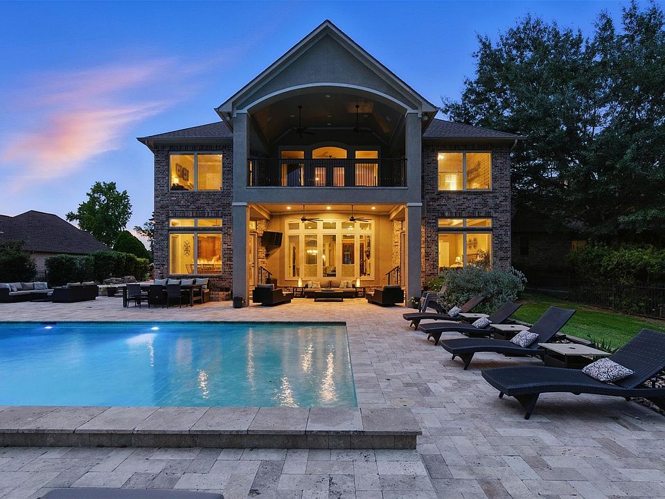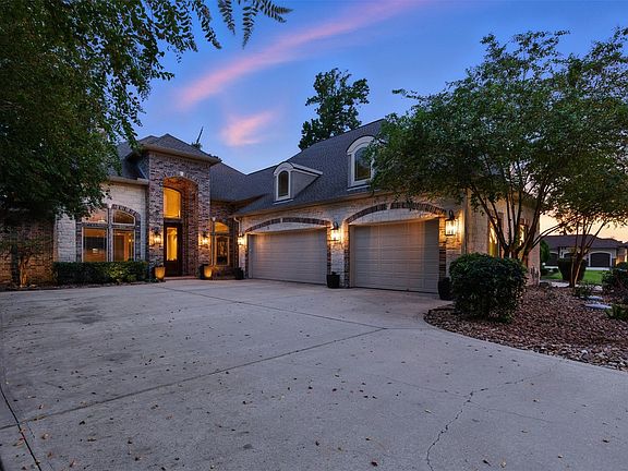 Welcome to this luxury retreat in the prestigious gated community of Grand Harbor on Lake Conroe. This custom home impresses from the start with stunning 10’ solid black walnut double front doors and a Y-shaped driveway leading to the near 2,000 sq ft garage! Inside, soaring ceilings, crown molding, and an open layout flow seamlessly through the spacious living areas. The gourmet kitchen features granite countertops, stainless steel appliances, and a large center island. The backyard is an entertainer’s dream—boasting a 20x40 pool and spa with travertine decking, fire features, surround sound, and lush landscaping. Enjoy lake living with your private boat dock, complete with a dedicated 60-amp panel. The oversized primary suite offers a spa-like bath with dual vanities, soaking tub, and walk-in shower. Additional highlights include a formal dining room, office, and bonus room. Zoned to Montgomery ISD, check out the upgrade list for complete features. A true lakefront gem!