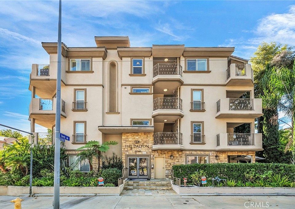 Luxury top floor south facing two story corner unit condo in the coveted Colfax Meadows neighborhood of Studio City, just steps from Tujunga Village. Located in Carpenter Charter Elementary and Walter Reed Middle School districts. This 2,140sqft townhouse style corner unit with 3 bedrooms & 2.5 bathrooms is located in The Dalton, an exclusive boutique building with only eight units. Open gourmet kitchen features Frigidaire Professional Series stainless steel appliances and granite countertops with breakfast bar. Hardwood flooring, crown molding and recessed lighting throughout, two balconies, two car side by side parking, and separate storage locker, this unit has it all! Entering you are greeted by a light filled well appointed living room and dining room with stone mantel fireplace. The separate tv/family room leads out to a corner south facing balcony, perfect for an evening BBQ.
