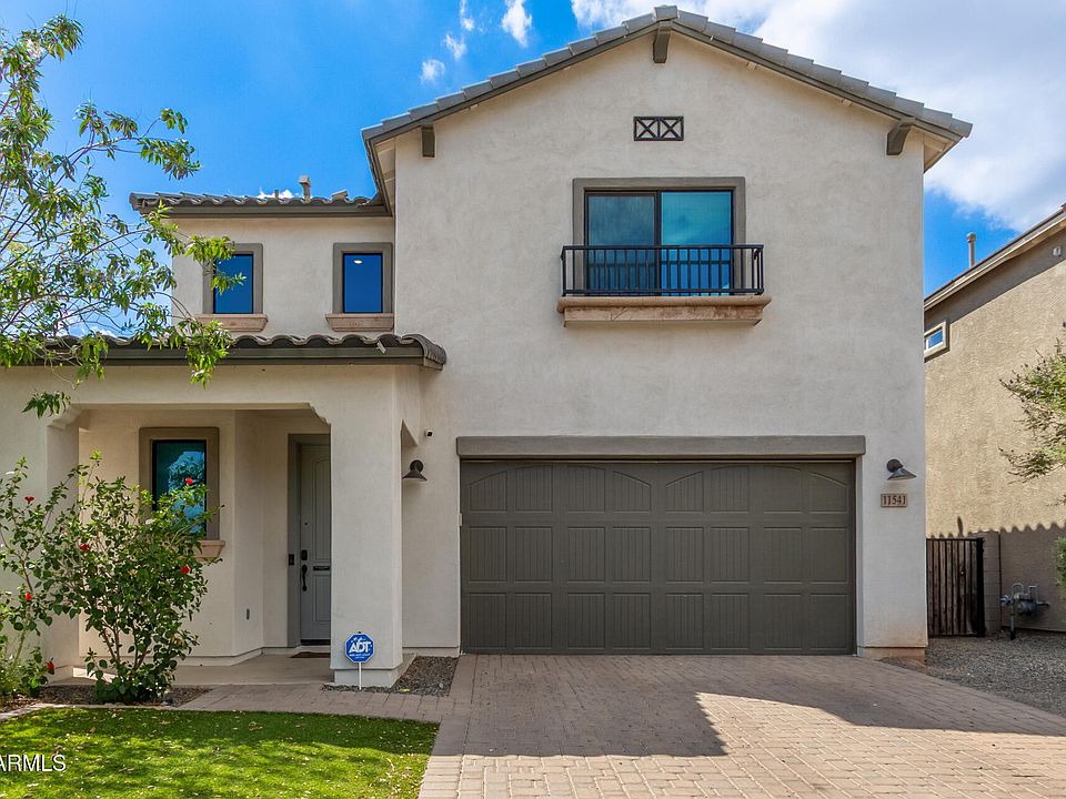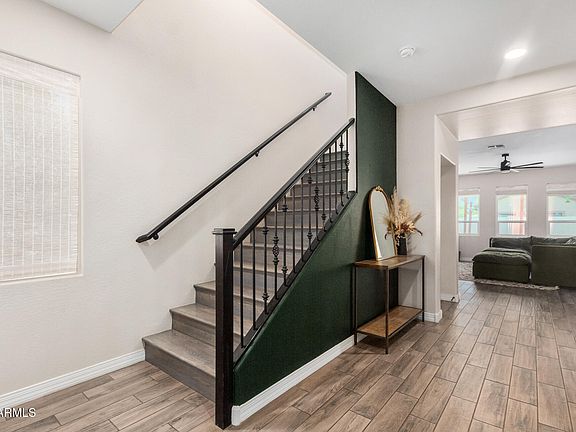 This beautiful 4-bedroom, 2.5-bath home located in the highly desirable Warner Enclave blends tasteful upgrades and open functional living perfectly. The kitchen features stunning Valhalla granite countertops, soft-close cabinets, a large pantry, and stainless steel appliances, including a gas range. The primary suite boasts a spacious walk-in closet, dual vanities, and a separate tub and shower. Additional features include a cozy upstairs loft, a dedicated office space, and a convenient upstairs laundry. The home is ENERGY STAR certified with a low HERS rating of 51, ensuring excellent energy efficiency. Outside, you'll find a well-maintained desert landscape with a covered patio, perfect for relaxation