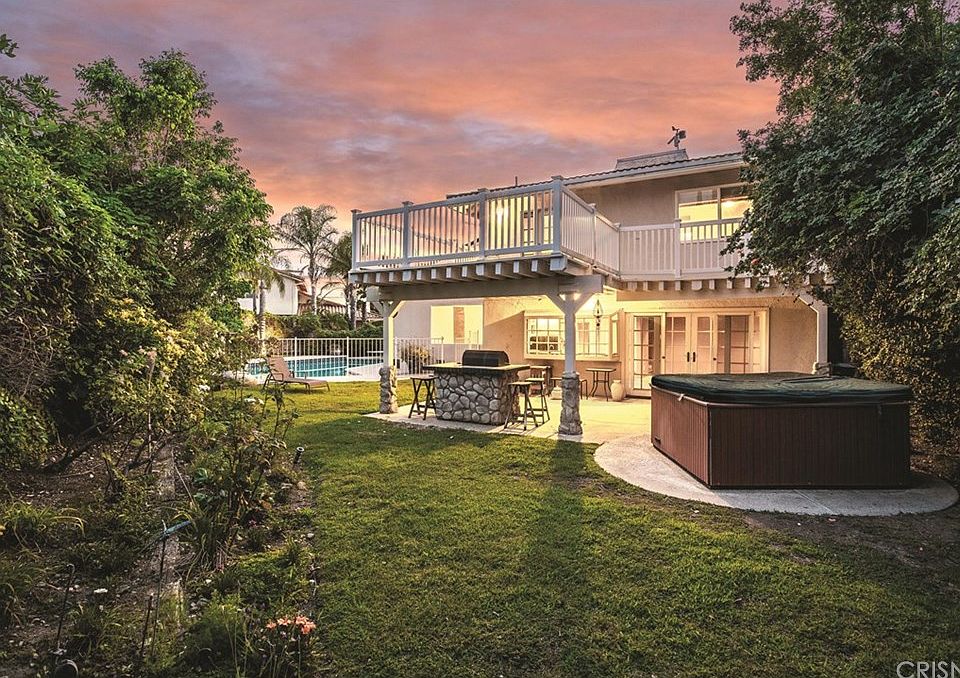 Located on one of Porter Ranches most sought after streets and just Minutes from the Porter Valley Country club. This entertainers pool home offers the perfect open floor plan. Downstairs you'll find an inviting living space with vaulted ceilings, inlaid hardwood floors and walls of glass that flood the house with natural light. The living room was updated with a centerpiece fireplace, recessed lighting and newer carpets. The kitchen was recently recrafted with all new cabinets, granite counters and stainless-steel appliances. The family room opens directly onto the kitchen and the outdoor patio areas creating a great flow for entertaining. The downstairs bedroom is perfect for a guest suite or office. Upstairs you'll find two generous sized secondary bedrooms. The master suite features vaulted ceilings, two built out closest and serene views from the oversize picture windows. Outside you'll find the house has been tastefully landscapes with drought resistant plants, newer paver driveway, and spacious three car garage. The backyard provides a great entertainers space including a covered patio, BBQ area and huge swimmers pool.The huge viewing deck provides the perfect spot to enjoy the amazing sunset views.This tasteful pool home is located in the highly sought school district which includes castle bay Elementary and Granada Hills Charter.