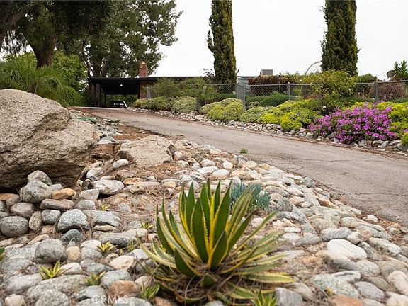 Near UCR and nestled in the hills of University Heights, this mid-century gem offers privacy, space, and spectacular views. A long, secluded driveway welcomes you to a beautifully maintained single-story, 3-bedroom, 2-bath home, designed for both comfort and style. Step inside the great room, where an open beam ceiling, wood floors, and a brick-faced fireplace create a warm and inviting atmosphere. The adjacent formal dining area seamlessly connects to the updated kitchen, featuring ample cabinetry, generous counter space, and sleek stainless-steel appliances. For a more relaxed dining experience, enjoy the breakfast area, complete with overhead inset lighting, a built-in buffet, and a pass-through window to the kitchen—perfect for morning coffee or casual meals. The home boasts three spacious bedrooms, each with wood flooring and energy-efficient ceiling fans. A separate indoor laundry room adds to the convenience. Outside, nearly half an acre of private, desert-inspired landscaping awaits. Stroll along a charming garden path or unwind in the sparkling in-ground pool and spa, safely cross-fenced for security. A grassy play area provides an ideal space for kids or pets. For vehicle enthusiasts or those in need of extra space, there’s an attached carport plus a detached 3-car garage with a workshop—offering versatility and functionality. Energy efficient leased solar system. This exceptional property blends timeless mid-century design with modern convenience, making it the perfect retreat.