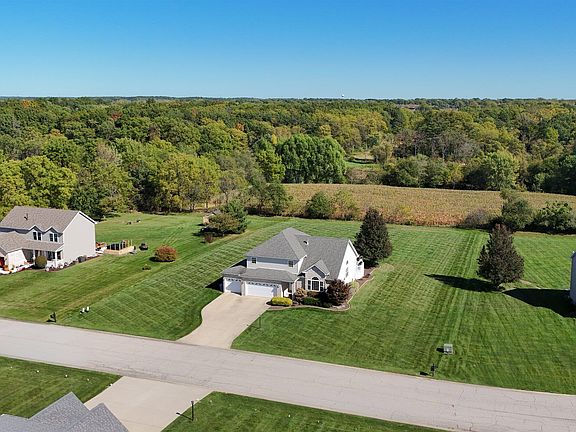 Rare opportunity -- one acre of privacy in Crown Point schools! This quad-level home sits on a full 1.01-acre parcel with no possibility of anything ever being built behind you. The home offers just over 2,400 sq ft of living space, vaulted living/dining/kitchen ceilings, and a full unfinished basement -- including an area with 12-ft ceilings ideal for a future rec room, flex space or even a golf simulator. Enjoy vaulted volume in the main living spaces, a gas fireplace, and new flooring throughout. The kitchen includes a new dishwasher and microwave and opens to bright living areas. Upstairs, you'll find three large bedrooms, each big enough for a king-size bed and all featuring walk-in closets. The primary suite includes his and hers closets and a private bath with a whirlpool tub and separate shower. Modern conveniences include a 3-car garage, a whole-house speaker system, an in-ground sprinkler system, and a stamped-concrete patio plus a Trex deck with outdoor TV. Most furniture is negotiable.