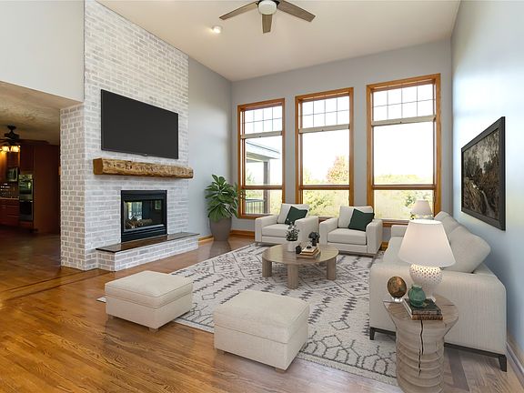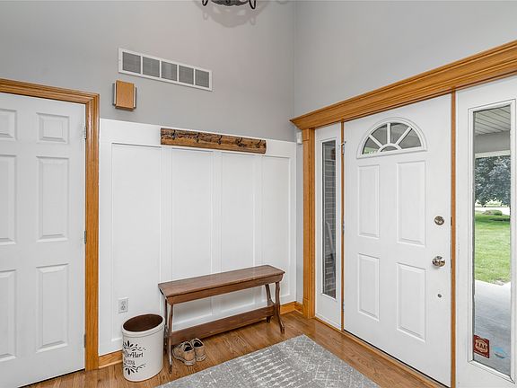Welcome home to this beautiful, serene acreage just minutes from downtown Indianola. This home is located on nearly 3 acres of land and requires very minimal gravel! Upon arrival, you are greeted with a charming front porch. Inside, you will find a formal dining room, living room with large windows, a double sided fireplace, eating area and an open kitchen with new appliances. A half bathroom and laundry room as you exit to the 3 car garage. The main floor also features the master suite. Upstairs includes 4 bedrooms and full bathroom. Downstairs, you will find a wonderfully large family room that walks out onto the patio (hot tub included), a bedroom, kitchenette, family room and ample storage! A brand new deck overlooks the property and pond and is perfect for entertaining or relaxing. There is a gazebo and firepit as well as a shed. Updates and fresh paint throughout! Schedule a showing today!