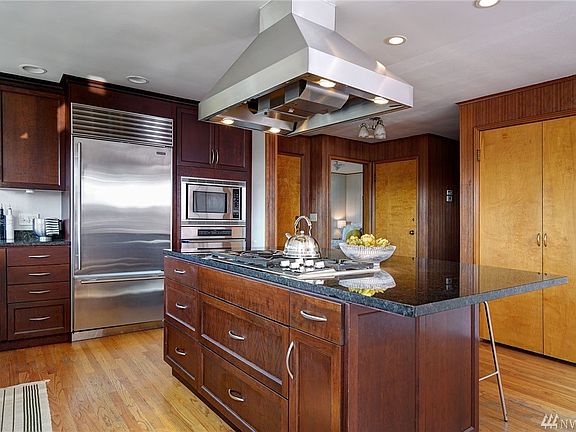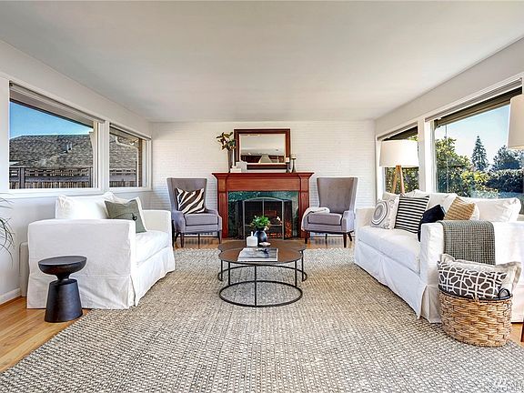 Spacious & tastefully updated 3+ bdrm, 2 bath view home in desirable Broadview. Ideal open concept w/ fabulous chef's kitchen, top of line SS appliances, granite slab counters & island w/counter eating space. Dining rm & living rm w/wood burning frpl. Hardwood flrs & picture windows. Lwr level: Den(non conforming 4th bdrm)/full bath, spacious family rm w/ 2nd frplc. Fully fenced backyard w/huge patio & garden space. Attached garage & carport. Enjoy a short walk to Carkeek Park & Beach.