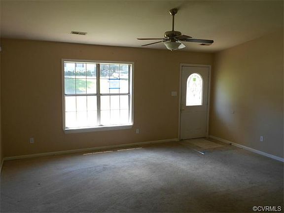 FOUR-bedroom, 2-1/2-bath ranch on cul-de-sac street, just 5 minutes from 288. Large, open great room with vaulted ceiling, TWO master bedrooms -- each with private bath and one with adjacent sitting room. Gas for heat, cooking and hot water. Low-maintenance vinyl exterior, nice deck overlooking backyard woods, plus large patio with fire pit. Equal Housing Opportunity.