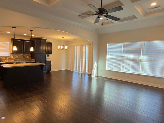 Featuring a spacious living room with coffered ceilings, an eat-in kitchen with an island, and a primary suite with a tiled walk-in shower. Enjoy your mornings on the screened-in porch or the sunny patio. Complete with a heated/cooled garage and irrigation system-comfort and convenience is one!