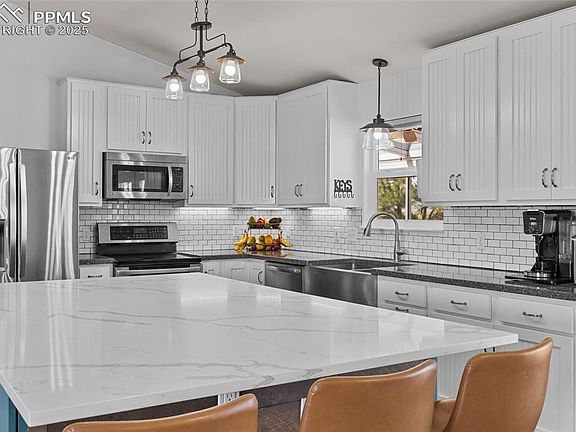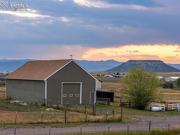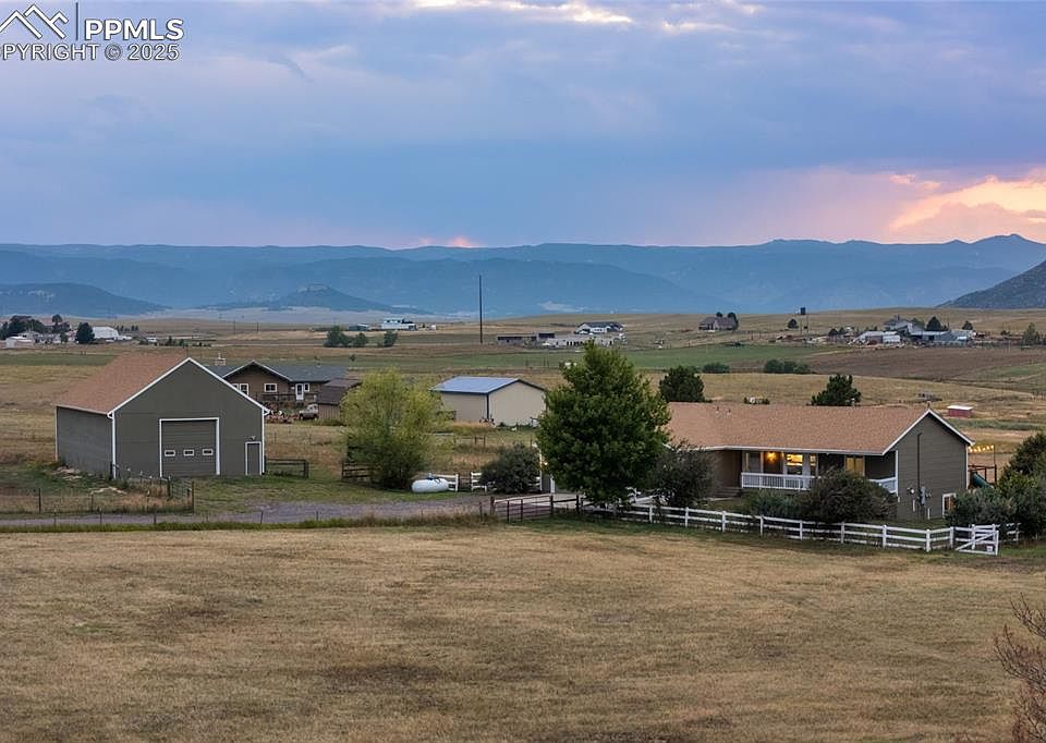 Ten acres of Colorado sky, a floor-plan built for real life and large remodeled farmhouse with horse barn! Set on a private 10-acre property and includes 4 fully fenced pasture fields with unobstructed Rocky Mountain and butte views. This updated ranch with a finished walkout blends elbow room, scenery, and versatility and is only minutes from I-25 and Castle Rock/Monument. Inside, 3,674 finished sqft lives large with 5 bedrooms and 3 full baths, a vaulted main living area with fireplace, and a sunroom that frames the horizon and opens to the deck. The renovated chef’s kitchen brings quartz counters, stainless appliances, and an oversized island—perfect for everyday and entertaining. The fully renovated primary suite is a true retreat, featuring a two-person walk-in shower and a stand-alone soaking tub. The walkout level flexes hard—private exterior access, a full second kitchen, dedicated theater, and generous bonus spaces—ideal for multigenerational living, long-term guests, or a serious rec zone. Two fireplaces (pellet + wood-burning) and room A/C keep things comfortable year-round. Outside is the Colorado homestead you’ve been hunting: a 30'×60' barn with 4 stalls, tack room, extra pens, and four fenced fields; plus a spring-fed four-season pond—bring the horses and your garden plans. Water is supplied by a private well, with approved household use including irrigation/livestock—the land actually works. An oversized 3-car garage with 220V plus ample off-street parking handles rigs and trailers; exterior perks include a deck, fire-pit zones, and a hot tub to soak in those sunset views. This is the rare blend—privacy, usable acreage, and a move-in-ready home with room to grow.