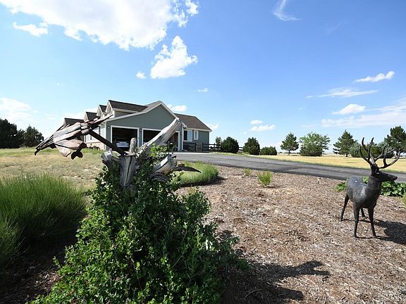 WOW, the views! This immaculate ranch home backs to Arapahoe County Open Space, where you have an unobstructed view of the plains. Enjoy your morning coffee on the patio while watching the wildlife. Cozy up to the gas fireplace with blower to keep you warm in the winter, and retire to your master suite with more amazing views. Two other bedrooms on the other side of the home for privacy, but close for convenience. Whole house antenna for free TV, and wired for security system. For the Craftsman, the basement is equipped with lighting and built in benches to help you with all of your crafts. The front yard features maintenance free native blue grama grass, and yes, the yard statues are included! There is also a small section in the back with artificial turf for year long green yard. Gas hookup for your grill. There is a brand new playground in the community to entertain the kids. This home is priced to sell, and a MUST to be on your showing schedule.