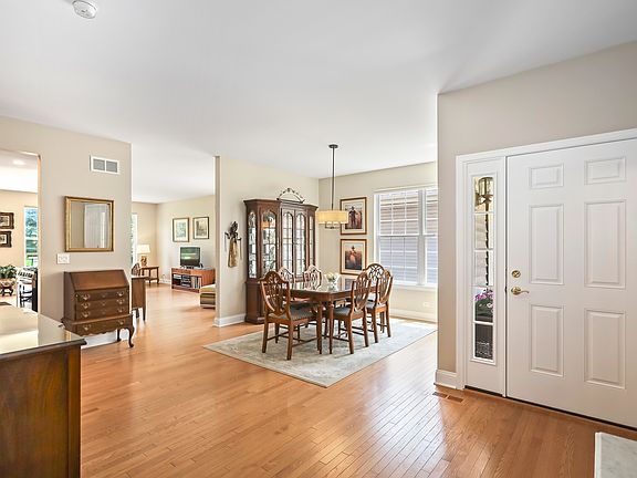 Beautifully maintained ranch in the highly desirable 55+ community of Carillon Stonegate. This move-in ready home features an open-concept layout with gleaming hardwood floors throughout, a bright kitchen with stainless steel appliances and recessed lighting, and an updated primary bath. The spacious den offers flexibility for a home office, guest space, or hobby room. A massive deep-pour unfinished basement provides excellent storage and endless potential for additional living space. Step outside to a large deck overlooking a private, east-facing backyard-perfect for entertaining, relaxing, or enjoying your morning coffee. The attached garage features a sleek epoxy-coated floor, and major exterior updates including the roof and siding (replaced in 2017) add peace of mind. Residents enjoy a low-maintenance lifestyle with access to a clubhouse, fitness center, billiards and rec rooms, outdoor pool, and tennis courts. The location offers excellent convenience, with easy access to I-88 and the BNSF Metra line, plus close proximity to a wide variety of shopping, dining, and everyday essentials. Don't miss the 3D virtual tour for a complete walk-through of this inviting home. A rare opportunity to enjoy comfort, convenience, and community all in one!