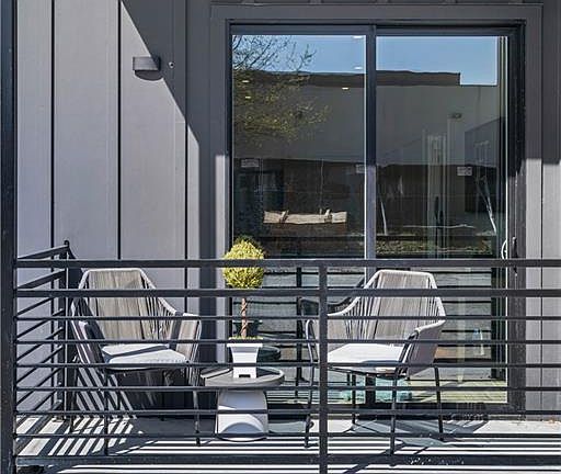 Tall ceilingsPrivate patioPeninsula-style breakfast barPremium wide-plank flooringStainless steel appliancesModern kitchenWalk-in closet