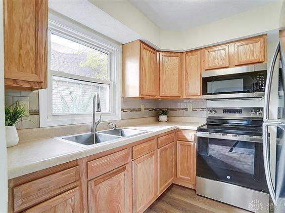 Kettering Schools! Awesome Renovation on this Adorable 3 bed, 1 bath, full basement Home with 1 1/2 car garage! This one is sure to please with Brand New Kitchen that has Stainless Steel appliances & Cabinets! Updates include All new flooring 2024, AC 2024, Water Heater 2024, Roof 2024, bathroom update 2024 and many other features. You will LOVE this Backyard with NEW Awning on Garage that lets you entertain family and friends in Comfort! This home is easily accessible from NEW Front Driveway to back of house and out from yard to the rear alley! The upper level has a HUGE Primary bedroom with built in desk or make up area! This Lovely Home is also Located in Kettering School District and has easy access to the Greene & 675!