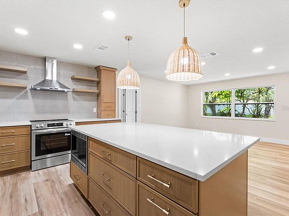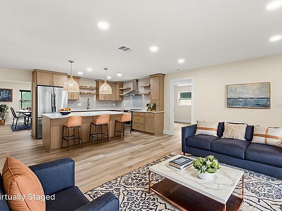 One or more photo(s) has been virtually staged. Welcome to your fully remodeled 3-bedroom, 3-bath waterfront retreat just minutes from downtown Dunedin that requires NO FLOOD INSURANCE! NO previous damage from 2024 storms! Nestled on a peaceful canal where you can relax on your porch watching the residential turtles and wildlife. This stunning home blends modern finishes with low-maintenance Florida living. Inside, you’ll find a bright, open layout featuring quartz countertops, A BUTLER'S PANTRY, and brand-new stainless-steel appliances—perfect for cooking, entertaining, or simply enjoying everyday life. With two master suites, this floor plan offers ideal comfort and privacy for guests or multigenerational living. Enjoy outdoor living year-round on two screened-in porches overlooking the water. The no-grass yard means easy lawn maintenance, while the two-car garage provides plenty of storage. Major updates include a 1-year-old roof, impact windows, and a newer A/C system—all adding to your peace of mind. Best of all, there's no HOA and no flood insurance required—a rare combination for a waterfront home! Just five minutes from Dunedin’s charming downtown, marinas, restaurants, and parks, this move-in-ready home offers the perfect blend of style, convenience, and natural beauty. Schedule your private showing today and discover your slice of Dunedin paradise!