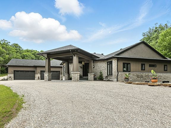 Experience ULTIMATE PRIVACY & LUXARY on over 40 acres of land. Welcome to this fully custom-built estate home, an extraordinary retreat designed to impress at every turn. As you approach via the private laneway, your greeted by striking armor stone landscaping and a beautifully designed interlock entrance, setting the tone for the elegance and privacy that awaits. The exterior offers everything you need for work, play, and leisure. A heated 5-car garage with drive-through access, warm/cold water supply, EV charging and direct entry to both the home and basement makes everyday living incredibly functional. A separate 2400sq/ft fully heated detached shop equipped with 200 amp service , water, bathroom, kitchen and a hoist is perfect for all your toys, tools, and ambitious projects. Enjoy a covered, vaulted outdoor dining/lounging area overlooking a saltwater pool accessible from every room in the home creating seamless indoor-outdoor living. Inside, the home exudes sophistication and craftsmanship. Expansive living spaces offer stunning views of the backyard and pool. The custom kitchen is a true showpiece, featuring high-end millwork, indoor bbq, 2 induction stoves, a large walk-in pantry with a built-in bar and second fridge, full door fridge and freeze- a true master piece. With 4 bedrooms (2+2) and 3.5 beautifully appointed bathrooms, every inch of this home has been thoughtfully designed for comfort and style. This is not just a home its a lifestyle. Truly custom. Truly unforgettable. See attachments for a full list of features and upgrades
