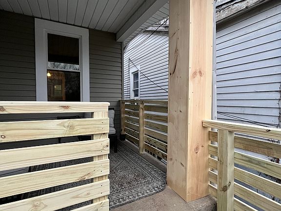 Completely remodeled a little over a year ago. New exterior paint, all new windows, all new LVP flooring, updated electric, new high efficiency hot water tank and newer furnace, new kitchen cabinets, interior painted, new stove and updated bathroom. Small rear deck. Front porch and stairs are on the process of having railings replaced. Gas FA gear, window air.