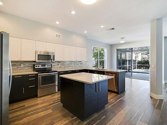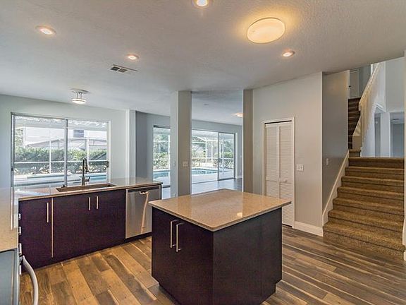 COMPLETELY RENOVATED and UPGRADES! UPGRADES! UPGRADES! You deserve the best and this 4 bed 3 bath house w/den downstairs(could become a 5th bedroom) delivers. The home has an amazing open concept and is designed for entertaining. See all of the NEW upgrades and you will be amazed. NEW roof, a/c, water heater, garage door/opener, paint in/out, The kitchen is a chef's dream! Completely remodeled with all NEW upgrades include custom kitchen cabinets with led lighting,backsplash, granite countertops, stainless steel appliances, fixtures and a deep dish sink. The NEW wood laminate floors truly make a statement. You will see designer porcelain wood look tile in the bathrooms and upgraded carpet upstairs. All the bathrooms are remodeled including toilets, vanities, etc. You name it it's new. We head to the backyard retreat and relax under your new lanai and the large enchanting pool which has been resurfaced for worry free enjoyment. Welcome home.