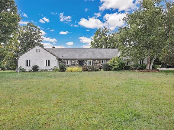Welcome to 1155 Glendale Road, a tastefully renovated ranch set on 14 acres, with no detail spared! This home is a true gem with 4 bedrooms, 3 full and 1 half bath and nearly 2,400 sq/ft. The kitchen offers granite counters, red birch cabinets & Italian tiles and is conveniently located just off of the living room and dining room for easy entertaining. Lounge in the sunroom where the floor-to-ceiling windows invite you to savor the picturesque views. The walk-out lower level includes a spacious family room, multi-purpose space, half bath, laundry room w/a dog washing station and a stunning fieldstone fireplace. Enjoy sunsets from the patio and deck, which overlook abutting conservation land.Storage is plentiful w/an attached two-car garage, a shed, a barn w/running water & electricity and a walk up attic w/potential for add’l living space if desired.Don’t miss out on this property which invites you to relax, entertain and enjoy the privacy of your own slice of paradise.