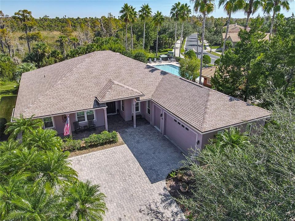 This RHAPSODY Floorplan provides spacious and comfortable living accommodation with beautiful views of the Preserve immediately adjacent to the Peaceful and convenient Community Pool a wonderful bonus for visiting Family and Friends. The Primary Suite is well appointed and offers private and self contained accommodation with a Full Bath, Custom Tiling and Glass walk-in shower and smart 'Hands Free' toilet. The Spacious Closet has been Remodeled to increase and maximize space and is fully Fitted. The Second and Third bedrooms are at the front of the property offering flex space and Private and separate living area with a Full Bath and Walk In Shower. The kitchen is designed for entertaining and leads on to the relaxing Family Room and also accesses the Formal Dining Room. The Oversized Double Garage and Golf Cart Garage together with an ample driveway for parking provide plenty of space for vehicles and is accessed by the Laundry and Administration Area which is Fully Fitted with Granite Work Tops offering a dedicated and Fitted Storage for the Administration area. The Laundry Room boasts a Cast Iron Sink with Granite Work Top and has an Ironing and Folding area. The outdoor space includes a large lanai, a patio and beautiful views of nature and preserve. SOLIVITA, a 55+ Gated Community in Poinciana, Florida offers full scale amenities, swimming pools, pickleball courts, tennis courts, softball field, walking trails and hospitality venues. Schedule a private viewing to appreciate this Upgraded comfortable, stylish home.