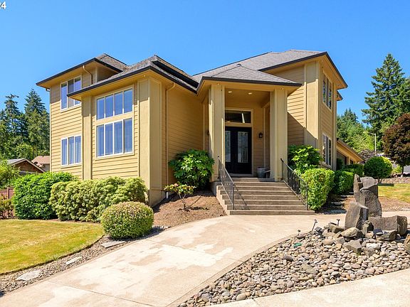 If you are looking for a home that provides seperation of space, this is the home for you. Entering the home you are greeted with a decorative staircase. Stepping to your left you enter the livingroom and are greeted with eucalyptus floors, a ceiling fan mounted on the soaring ceiling while natural light fills the space.Pass through the French doors into the large family room which includes a gas fireplace, built-ins, hardwood flooring and twelve-foot ceilings. The adjoining dining room features a sliding patio door revealing a view of the covered patio and gorgeoua water feature.The dining room opens up to the kitchen with its glass doored pantry, gas range and warming oven located in the granite island, stainless steel refrigerator, wine refrigerator and unddermount sink situated in the quartz countertop. Work from home? The roomy office is located on the first floor and includes built in bookcases and more natural light. The office has easy access to the full bath located just steps away. Upstairs the primary ensuite inlcues a jetted tub, walk-in shower, custom dual sinks, and an adjoining 8 ftX 15 ft primary closet which hosts the 6ft x 6ft area for the washer and dryer. To provide privacy, the two other bedrooms and third full bath are located across the walkway which overlooks the livingroom. Along with the ample storage in the three car garage there are mulitiple storage areas spread throughout the home.