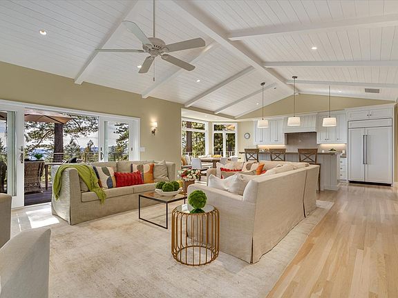 This masterfully renovated farmhouse expresses contemporary style and offers warmth and modern elegance with timeless finishes. Sited on 3+ acres with stunning vineyard & mountain views, the property presents all the hallmarks of a modern farmhouse compound with two separate dwellings. The main house features white oak floors, wood beam ceilings, & abundant windows to create a light & airy atmosphere. Living room with Napa stone fireplace, formal dining room, sumptuous primary suite, and a sophisticated country kitchen with Caesarstone counters, Viking range, farm sink, Sub-zero refrigerator, Bosch dishwasher & large bay window surround eat-in kitchen. The kitchen is located at the heart of the home and flows into the family room. The lower level has a grand recreation area, gym, private guest quarters, and a sauna. A luxurious second dwelling features a beautiful lavender garden entry, a spacious living room, a full kitchen with a Wolf range, a Sub-zero refrigerator, a farm sink, a Bosch dishwasher, beautiful cabinets, a spacious mud room, and a one-car-attached garage. Outdoor dining & entertaining around a deck & backyard patio with a beautiful fountain imported from France. A beautiful environment to accommodate family and friends for entertaining and holiday gatherings.
