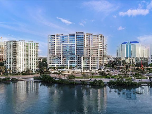 PRICED TO SELL! The Vue Sarasota Bay Condominium offers a luxurious mainland lifestyle in the heart of Sarasota. This is the iconic building everyone notices upon arriving in the city. Residents enjoy an extensive array of exclusive services and amenities at The Vue, including 24-hour security and concierge services, valet parking, a state-of-the-art fitness center, a resort-style infinity pool with spa and grilling area, and a very active social committee. As the valet opens your car door and you step through the elegant lobby, one word comes to mind: Nice. Your residence at The Vue offers exceptional privacy and stunning sunrises over the city each morning. This prestigious home provides breathtaking views of Sarasota Bay, the City Marina, the Intracoastal Waterway, Big Pass, and even a glimpse of the Gulf of Mexico. The private elevator opens directly into your seventh-floor foyer, leading to your personal sanctuary. Greeted by a gorgeous, three-dimensional panoramic scene—and perhaps a warm welcome from your pets—you'll feel one thing: I earned this. The open floor plan boasts incredible views from the eat-in kitchen, the spacious living/dining area, and the primary bedroom with its luxurious en-suite bath. Gleaming floors, top-of-the-line Jenn-Air appliances, a water softener system, a whimsical "octopus in the shower". An unusually large storage locker add to the appeal of this remarkable home. From your door step you may walk to Sarasota's cultural activities; the Sarasota Opera, the Van Wezel Performing Arts Hall, live theatres, galleries and restaurants. For the more nautically inclined you can walk to the yacht harbor and various activities throughout the year. Built in 2017, The Vue has no worries concerning the Florida required Milestone Building Inspections.