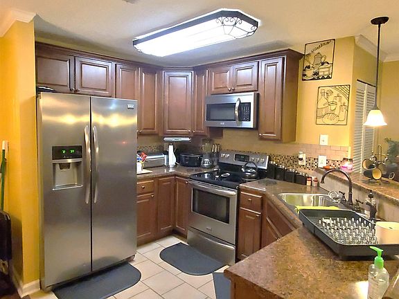 Tennis courtWasher and dryerDining roomKitchen with all appliancesOpen concept floor planCovered patio