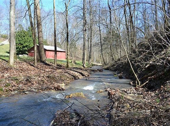 Enjoy a private retreat in this well maintained home. Over 21 acres with a beautiful creek, natural spring, red barn, workshop with pot belly stove and sauna. Tons of storage, 2 brand new HVAC units with warranty, granite counter tops, fridge remains.