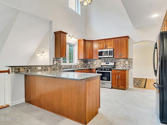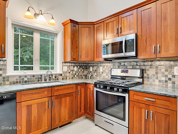 Beautiful colonial set back off the road on a very private over 5 acre lot. Featuring a first floor primary suite with an upgraded primary bath, complete with soaking tub and tile shower. The kitchen boasts granite countertops and stainless steel appliances and overlooks the fireplace with built ins on both sides, a formal dining room, and a study or den. Upstairs are an additional three bedrooms and full bathroom. The walkout basement is studded and ready to be finished off for additional living space. Sit out back on the deck overlooking the backyard, or on the front porch with a morning cup of coffee. All of this within the Schalmont School District.