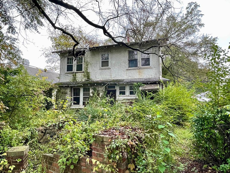 Situated on a tree lined corner in historic Tanglewood Terrace is this interesting and once elegant eclectic Craftsman airplane bungalow constructed of brick, stone and plaster. Well maintained homes on street and several rehabs nearby. This home is in severe disrepair and not sure if it is salvageable.
