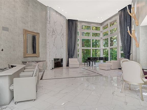 Absolutely spectacular, gated estate nestled on over 4.5 secluded acres presents distinctive & custom architectural design and sweeping ceilings throughout. Impressive, grand 20' diameter foyer boasts leaded glass French doors, marble flooring, and tons of natural light. Captivating great room features walls of glass, fireplace, wet bar w/ice maker. Formal dining room w/stained glass accents and unique inlaid tile. Gourmet kitchen offers full size, side by side Sub-Zero freezer/refrig, 3 ovens, 2 DW, Viking 6 burner gas range, skylights, circular eating area w/glass surround, wet bar, and overlooks sunroom. Adjacent butlers pantry, walk-in pantry, and engaging family rm w/fp. FF owners wing highlights library, office, spacious bdrm, and an awesome glamour bath with jetted tub, h/h wic, h/h vanities & water facilities. Authentic spiral staircase, bordered by glass windows, leads from master to walk-out LL exer. rm, hot tub, sauna w/ shower, cedar closet, 1/2 bath. Two add'l staircases lead to another LL boasting theater rm, fp, rec rm, billiards/bar area, wine cellar, 2nd kitchen, and bedrm & full bath. All lower level finished areas have walk-outs to landscaped grounds. Second floor features 3 spacious en-suite bedrms and laundry closet. Amazing outdoor entertainment area highlights full bar w/built in gas grill, inground pool, H/H full baths. Pond. Notables include Smart House,