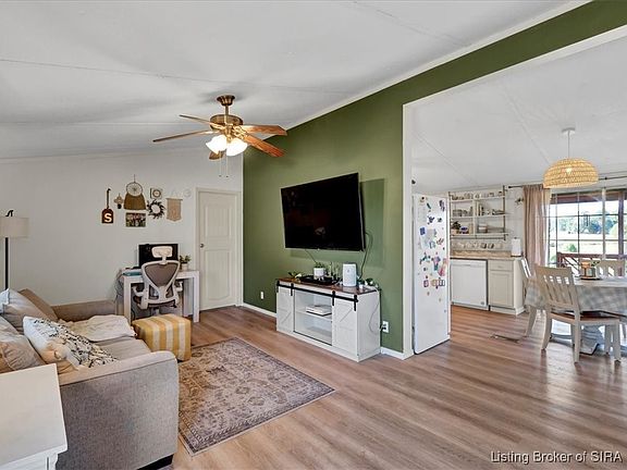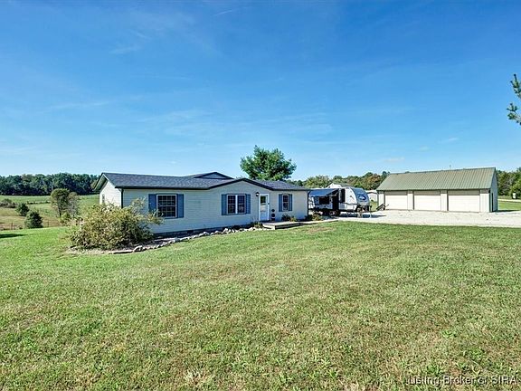 Nestled on 5 picturesque acres, this 3-bedroom, 2-bath home offers breathtaking views of rolling hills. Inside, you’ll find recently renovated kitchen and bathrooms, along with fresh carpet and vinyl throughout, making this home move-in ready! For those who love extra space, the 32x40 DETACHED garage/shop is equipped with concrete floors AND electric—perfect for hobbies or storage. Additionally, there’s a 12x24 horse barn with a concrete floor. Step outback onto the large covered back deck and enjoy the views. With the convenience of being just minutes from Corydon and a short drive to Brandenburg, you can enjoy the best of both worlds—secluded country living with easy access to town. Don’t miss out on this rare find!