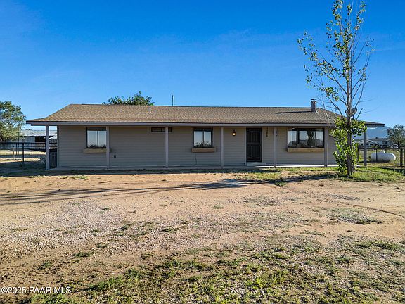 This charming ranch style three-bedroom, two-bathroom single-family home offers the ideal blend of comfort and functionality that horse owners and families will adore.Step inside to a bright, welcoming atmosphere with granite countertops and hardwood floors throughout. This house is equipped with a large wood burning stove as well as a recently installed HVAC system.This property features a fully fenced perimeter, a spacious backyard, a dedicated dog run, and a horse turnout area. The backyard is ideal for outdoor living, complete with grass and a mature shade tree that provides a perfect setting for entertaining or simply relaxing and enjoying Arizona's beautiful weather.Livestock owners will appreciate the property's equestrian-friendly setup, featuring a spacious barn and ample room to expand horse operations or develop additional facilities.This property is conveniently located just 20 minutes from downtown Prescott. Come take advantage of this opportunity to embrace the a rural lifestyle without sacrificing modern conveniences.
