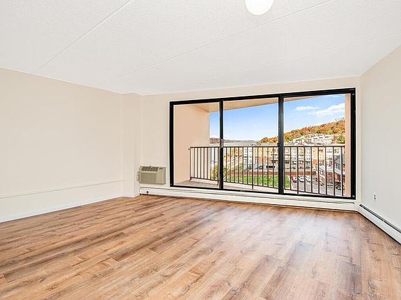 River Views!! Studio apartment with waterfront views, balcony and walk-in closet. The Riverview Club features: 24hr Doorman, California-style sundeck, BBQs, Gym, Sauna, Valet Dry Cleaning Service, Community Room with a fireplace, a large Laundry Room, Bike Racks. 1 Garage Parking Spot INCLUDED. Bee-Line bus stop right outside. 5 Min walk to the Metro North, Greystone Station that takes you to midtown NYC in 30 Minutes. Additional Storage Units available. Across the street from the Old Croton Aqueduct nature path that goes 30 miles up the River Towns. Steps from the Hastings Border where there are Shops, Restaurants, Farmers Market and more! 1 Mile from Untermyer Park and Gardens, 2 Miles from Yonkers Downtown Waterfront. $40 non-refundable Credit/Background Check fee per applicant 700 minimum credit score and an income of 35 x the rent is required. Be sure to check out the virtual tour.