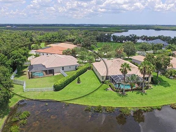 AWC - Taking Backup Offers - Picture yourself in this stunning Medallion built 4 BR, 3 B home nestled on a private cul-de-sac in the desirable community of River Woods! This wonderful open & spacious design, packed with upgrades galore, offers over 2800 sq ft for easy living and gracious entertaining. You're welcomed to the home through a glass door entryway then greeted by custom tray ceiling detail, soaring 12 ft ceilings and beautiful crown molding throughout. Entertaining is a breeze in the Chef's kitchen featuring 42 inch wood cabinetry, Corian counters, and stainless appliances...there's even a complete Butler's pantry with built in wine rack, cabinets, counter, and huge closet for storage! Dreaming of an outdoor kitchen...a separate covered area on the lanai is just waiting for your design! An office with 9 ft double glass doors is attached to the Master suite offering versatility to be a personal fitness room, nursery, art studio, or whatever your heart desires. The 3rd & 4th bedrooms, combined to make a second master complete with a full bath, is perfect as a guest, mother-in-law, or adult child suite or can easily be converted back to separate rooms. Storage is no problem with a HUGE garage and plenty of closets throughout the home. Enjoy a leisurely stroll along the path leading out to the Manatee River & soak up the view from the observatory deck or play some tennis at the community courts complete with a pool and fitness area. River Woods is an exceptional community of tree lined streets with a low HOA and no CDD!