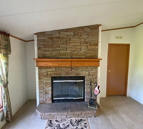 This 3 bedroom, 2 bathroom home on 6 acres features a stone fireplace, garden tub and spacious kitchen.
