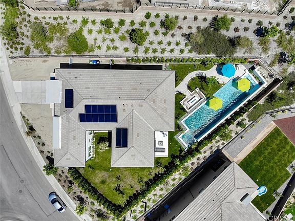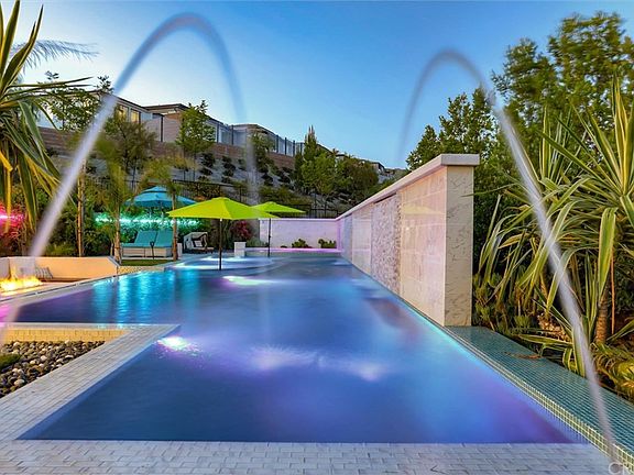 Contemporary Luxury Residence at its finest. Situated at Westcliffe, one of the most exclusive gated communities in Porter Ranch. This magnificent smart home sits on a 14,124 sf lot, the equivalent of an entertainer's paradise. It boasts a luxury one of a kind lap pool, with 3 waterfalls, LED lighting and a baja shelf, spa and outdoor pool shower. The luxury outdoor living space with bbq area, sitting area, sunken fireplace, and ample side yard space with a tastefully tiled courtyard area. This home offers a one bedroom en-suite on the first floor perfect for a guest bedroom, office, gym or rumpus room. The second floor comprises an expansive loft with balcony with some incredible views, three bedroom en suites, including the private luxurious master suite with its own private office/flex space area. The gourmet kitchen that opens to the dining and living room area, offers granite counter tops, high end stainless steel appliances, walk-in pantry, extensive cabinet space. The 8' foot glass panel interior doors around the house brings light and life to the home. 3 Car Garage with 2 EV charging station. The beautiful tropical landscape features more then 250 mature trees for added luxury and privacy surrounding the home and extensive green side yard area for any use and many mature fruit trees like. Smart home features that control: 8 security cameras, lights, swimming pool and spa, backyard lighting, sprinkles system, garage door. Schedule a showing to appreciate home.