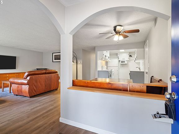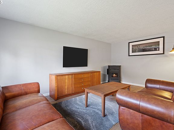 Lovingly maintained one-level ranch on a tranquil lot in the heart of the city. Fresh blue paint and a calming water feature in the front yard set the peaceful tone for the rest of this Mill Park home. Inside features newer carpet, a wood pellet stove, and stylish upgrades throughout, including quartz countertops in the kitchen and bathroom. Charming table in the adorable breakfast nook included with the house. Comfortable primary bedroom with sliding barn door for added character. Three total bedrooms all on one floor. It’ll be hard to come in from outside this summer with the covered patio, blueberry bushes, fragrant lavender, and sheds for storage/hobbies in the backyard. Plus patio furniture, cover, and rug all included! Near parks, a library, shopping, I-205, easy trip to all the cute places in Montavilla, and more. [Home Energy Score = 3. HES Report at https://rpt.greenbuildingregistry.com/hes/OR10238925]