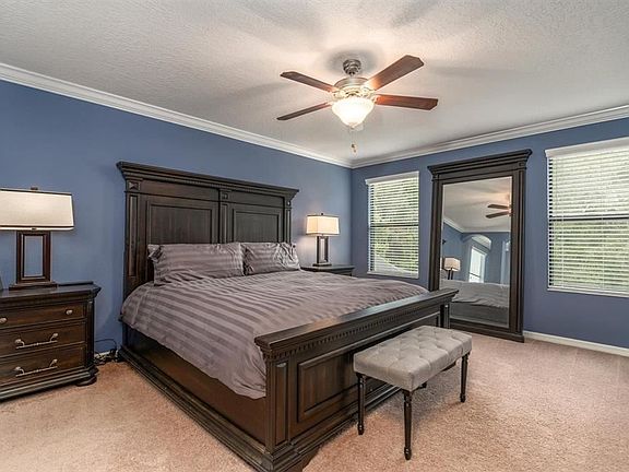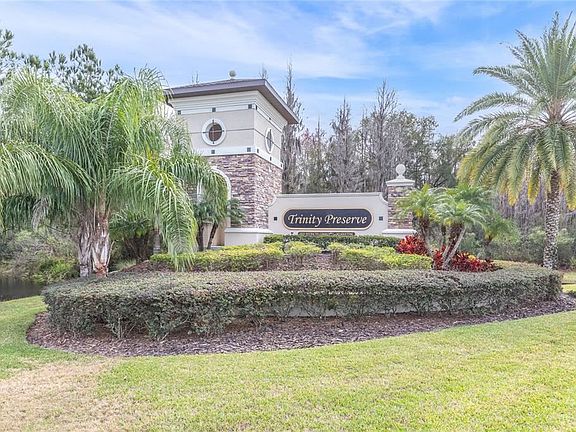 Welcome home! 6 bedrooms, 4 full baths AND a 3 car garage in the heart of Trinity Preserve with a backyard nature view including 100 ACRES OF CONSERVATION! 6 bedrooms provide a perfect multigenerational home with a main floor bedroom for those who prefer not to take the stairs. METICULOUS owners show true pride in cleanliness and care. Smart open floor plan offers tons of versatility for any family. NOT IN A FLOOD ZONE and custom hurricane shutters for all openings in case they are needed. Neutral grey and blues throughout. Living and Dining Rooms open up to a Great Room, Open Kitchen, and cozy breakfast nook. The kitchen has $10k of upgraded gourmet Kitchen Aid appliances including, French door refrigerator, stainless dishwasher, convection microwave, and double oven convection range. Outside, an enlarged paver patio and covered lanai with screened cage overlook nature. The backyard is completely fenced- the owner has a back row of fencing that he removed to enjoy the view. Easily reinstalled. Additional main floor bedroom can be a perfect spot for guests, playroom, office, or whatever suits your needs. The soaring foyer leads up the statement stairway to the open loft which can double as another room to hang out in or office. The oversized owner's suite offers a sitting room, large bedroom, walking closet with custom shelving, and ensuite including a soaking tub, stand up shower, and dual vanities. Two more full baths and 4 more bedrooms upstairs! The upper floor laundry room includes a newer Samsung high-end top load washer and dryer. THREE car garage with overhead storage installed for ease. The garage door is insulated. 2" designer blinds and window treatments throughout. Low-E Dual pane windows, 15 SEER AC serviced regularly. Rounded corner beads and crown molding for a luxury feel! Fully irrigated sodded landscape. Mowahk green certified plush carpet-super clean! AO Smith Voltex efficient hot water heater. Frame wall insulation. Programmable thermostat- 2 zones. Maple wood cabinets throughout.NEW exterior paint! FABULOUS LOCATION! Award-winning schools. Close to Publix, shopping, SR 54 corridor. Pasco County is the fastest-growing county in the nation! There is so much at your fingertips! Tampa International Airport is just 25 mins away. Beaches are a hop, skip, and jump! The Gated neighborhood offers additional security checks with a hired guard at night. This is a PERFECT spot for your next home!