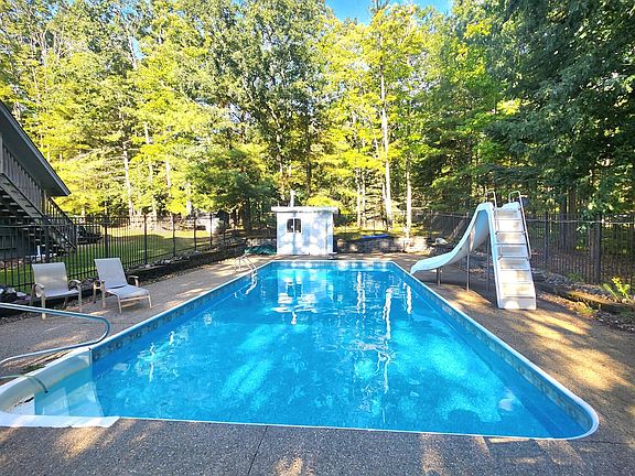 Heated outdoor poolBrick gas fireplaceHot tubFull finished walkout basementLakeside firepitSandy beachExpansive deck