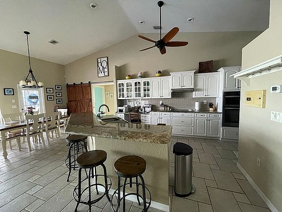 This property enjoys a beautiful view of the lake, facilitated by a roomy panoramic screened lanai. The open floor plan generates a sense of openness effectively making the house appear larger. The location is ideal owing to its convenient access to a major highway, restaurants and grocery stores within a safe neighborhood.