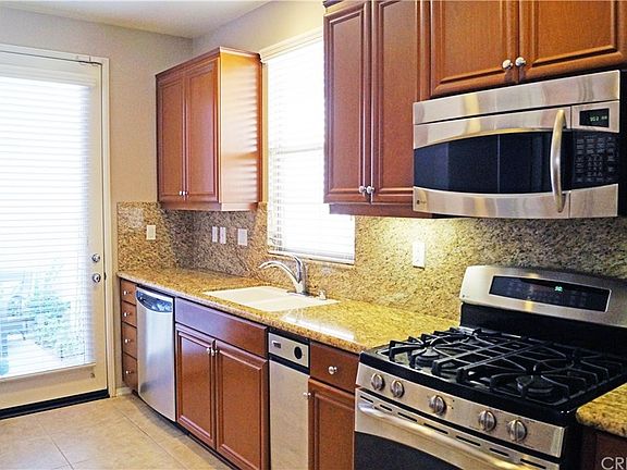 Prime location! Welcome to this stunning and well-maintained home by the original owners, located in the highly regarded Cortile-Tuscany GATED community that still has one of the lowest priced HOA's in Porter Ranch! This beautiful fully detached home is in a desired location with hillside views and offers a ton of upgrades. The home features: granite countertops with a full granite backsplash, stainless steel appliances, 20-inch tile flooring, custom window treatments, ceiling fans both downstairs and upstairs, upgraded wood flooring on the entire second floor, including closets. Travertine countertops with dual sinks and large shower in the owner's suite bathroom. Laundry is conveniently located on the second-level for easy access. Additional recessed lighting added in the living room.Two private courtyard patios, custom built-in garage organizers and finished garage flooring. Bright and open floor-plan has a living room and dining room that is ideal for enjoying evening dinners and entertaining guests. This community has great amenities: 2 large pools, 3 spas and BBQ areas, perfect for entertaining. This prestigious community is walking distance from Porter Ranch Community School (K-8) which has a 10/10 in California School Ratings, the Vineyards Shopping Plaza, Ralph's, Walmart, AMC Movie Theater, Kaiser, Facey, a variety of Restaurants, Community Parks, and hiking/biking trails, adjacent to Porter Ranch's most luxurious Westcliffe community. Freeway access minutes away.