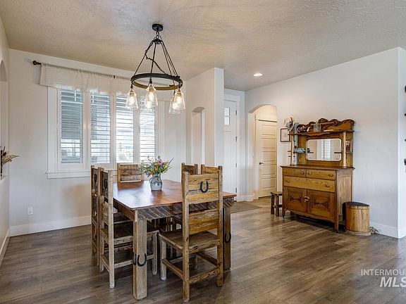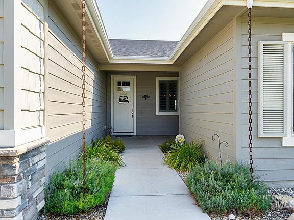A meticulous 4-bed, 2-bath home offering a seamless open-concept with privacy-minded split bedrooms. The standout kitchen is adorned with sand-washed cabinetry, a wood-wrapped island, and quartz counters, while thoughtful touches like corner fireplace and plantation shutters elevate the ambiance. The primary suite serves as a serene retreat with dual closets and a sleek tile shower. Practical needs are met with a fully enclosed laundry room featuring a mud-bench and an oversized 3-car garage with a built-in workbench. Step outside to a spacious backyard with a covered patio, storage shed, and self-watering garden, ideal for entertaining or leisure. Living in Carriage Hill North means enjoying neighborhood amenities like a pool, splash pad, parks, and walking paths. Residents also gather for seasonal celebrations including Easter, Halloween, and Christmas, along with weekly food trucks in the Spring and Summer. Proximity to Lake Lowell and Red Hawk Golf Course brings endless recreation close to home.