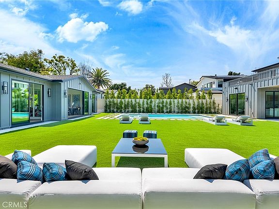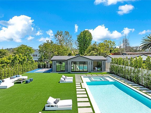 Exquisite Newer Construction Estate located in the coveted and prime neighborhood of Colfax Meadows. A luxurious Modern Farmhouse residence situated on a gated and private sprawling 15681 sq ft lot approx. showcases a 2-story masterpiece over 8600 sq ft with an expansive and open floor plan with soaring high ceilings and wide-plank floors throughout. The stunning grand entry leads you to an elegant living room with fireplace, large windows, designer lighting, and a formal dining room with a private patio. A gourmet chef's kitchen features a double island, walk-in pantry, custom sleek cabinetry, top of the line Sub Zero Wolf appliances and a large breakfast area. Additional downstairs amenities include, enclosed glass wine display, sophisticated private office, theater room, powder room, an ideal guest bedroom with bath and an abundantly light filled inviting family room with a seamless transition to an outdoor entertainer's dream. Upstairs behold 4 large en-suite bedrooms exquisitely designed each with its own bathroom, and a romantic master suite which consists of a private balcony overlooking the oversized backyard, spacious walk-in closets and a lavish spa inspired bathroom with soaking tub and dual vanity. A beautifully landscaped resort-like yard features a built-in barbeque, enormous pool, jacuzzi, spacious grass area, basketball court, generously sized Approx. 800 sq ft guest house with a large room, bathroom, kitchenette and gym. Close to fine dining, shops and award-winning schools. This property is truly one of a kind!