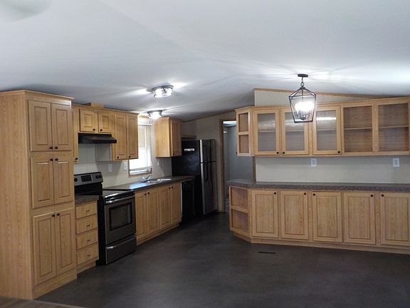 Stunning 3 Bedroom 2 Bath Manufactured Home. Open Floor Plan with Large Kitchen, Dining Room and open to Large Livingroom. Beautifully Remolded with new stunning floors, light fixtures and more. Primary Bath is stunning with Huge Walk in Shower and oversized counter. Home has a huge 10x10 Covered patio for outdoor entertainment with friends and Family. Stainless Steel Kitchen appliances lots of Cabinets for Storage. 8 x 10 Storage unit also included.