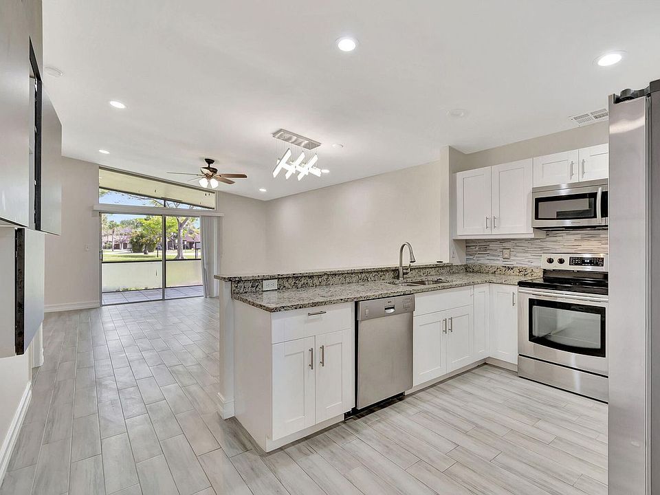 Tennis courtsUpdated appliancesOpen-concept layoutModern kitchenStylish flooringSpacious green areaCovered and screened patio