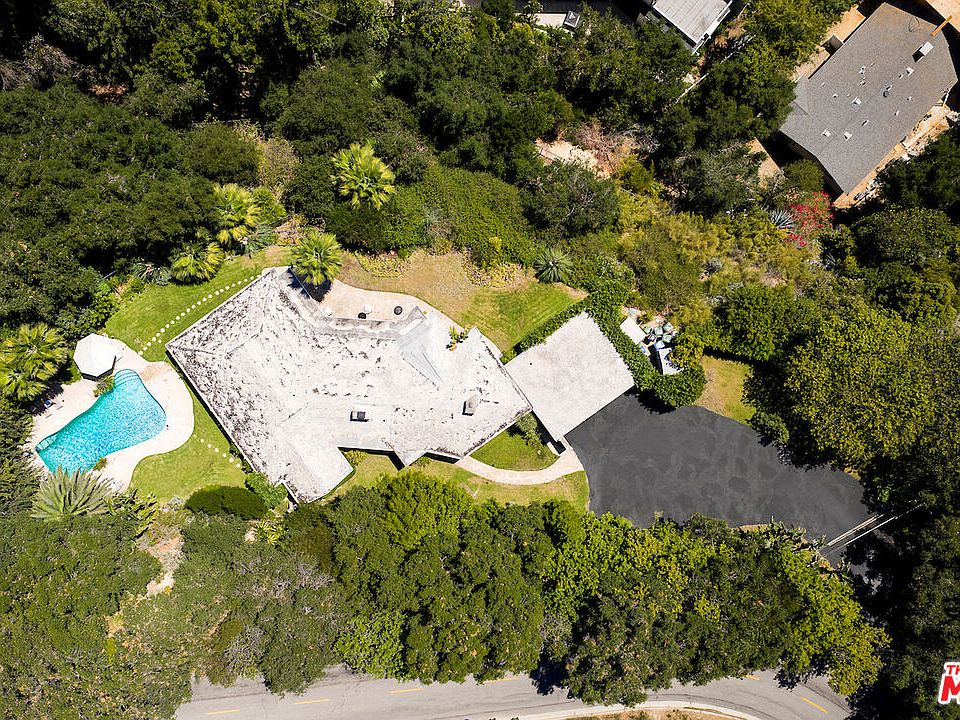 Mid-century gem privately tucked behind gates on a sprawling 1.4-acre lot in Bel Air with exceptional views from the city skyline to the Pacific Ocean. Wood-carved double doors lead into the expansive living room lined with vaulted ceilings and concrete flooring, paying homage to true mid-century design along with the stone fireplace. Wall-to-wall glass sliding doors harmoniously blend indoor-outdoor living, providing access to the patio for dining al fresco, and flood the interior with natural sunlight throughout. A chef's kitchen, dining room, and four bedrooms with updated en suites complete this functional floor plan. A stone pathway, framed by lush greenery, leads to the expansive in-ground pool with an abundance of lounging areas to enjoy this tropical oasis. An oversized motor court plus a three-car carport ensure ample parking. Seldom does a property offer land and views in one of the most highly coveted locations in Los Angeles while also providing an opportunity to reimagine for value add.