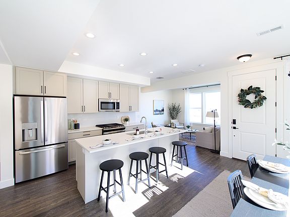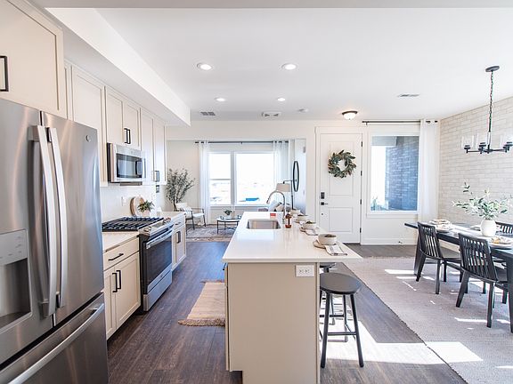 Fully Furnished Amazing Custom Model Home for sale with a limited time Interest rate buy-down special! Move-In Ready. All of the furniture you see is included too!! For the folks that love indoor-outdoor living, this home is a must-see. This amazing designer model home plan has 4 covered patios! The open floorplan is welcoming and comfortable. It has upgraded countertops throughout including undermount sinks and faucets. In addition, in has stainless appliances including fridge and gas range. It also has beautiful 42" cabinetry with crown molding and a stunning backsplash. It has custom wall features and shelving too. It has a large owner's suite with a huge master bath walk-in shower & closet. And guess what else, it's own covered patio! The home has 3 bedrooms, 2.5 bathrooms and a 2 Car Garage. A fully furnished, move-in ready home. How perfect and convenient! It is an end unit home just a few doors down from the watercourse. Make sure you get the most out of your new home purchase, whether it's a Daybreak townhome or single-family home, Please Call today to find out more about this Fully furnished model home.